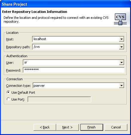 Host und Repository path definieren, wo das Projekt zu finden ist bzw. wo es gespeichert werden soll. Authentication legt die Informationen für das Login zum CVS-Server fest. Connection spezifiziert die Art der Verbindung (normalerweise im „pserver“).