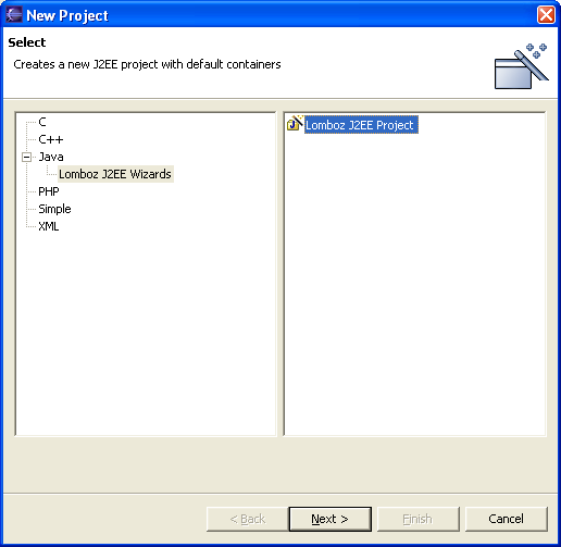 Mit „New > Project: Java > J2EE Project“ wird ein neues Projekt angelegt.