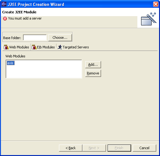 | Sie sind hier: Zum Anfang > WebServices mit Java, Axis, XDoclet und Eclipse > Vorbereitungen > J2EE Projekt anlegen und Web-Container anlegen | english | ![]() |